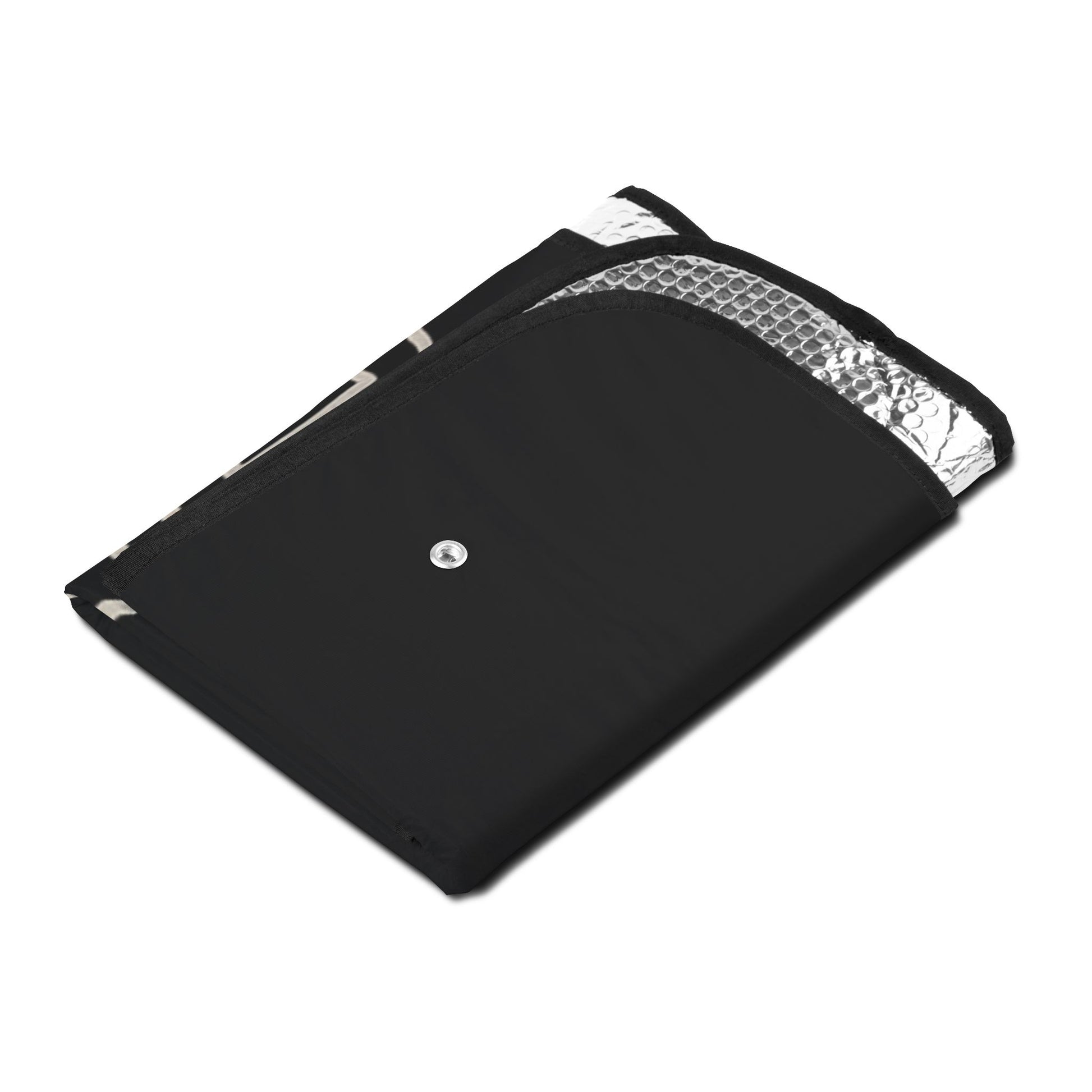 Keep your car cool and show off a streamlined racing vibe with this graphic car sun shade. Built with a durable polyester face and a reflective aluminized film back, it blocks harsh rays and cushions your dashboard and seats from sun damage. Lightweight and simple to install with included suction cups, the shade folds away easily when not in use. The dark racing logo adds attitude to every parked moment — practical protection with a motorsport edge.